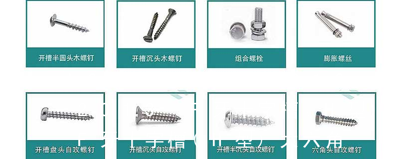 主要分類包括普通螺絲、機(jī)螺絲、自攻螺絲和膨脹螺絲三種。 有頭螺釘Cap screw 過去限于全牙的扣件。 六角頭螺釘Hex cap screw與大六角螺栓Hex bolt 顧名思義為頭部為六角型的外螺紋扣件,設(shè)計(jì)為使用扳手轉(zhuǎn)動(dòng)。依照ASME B18.2.1標(biāo)準(zhǔn),六